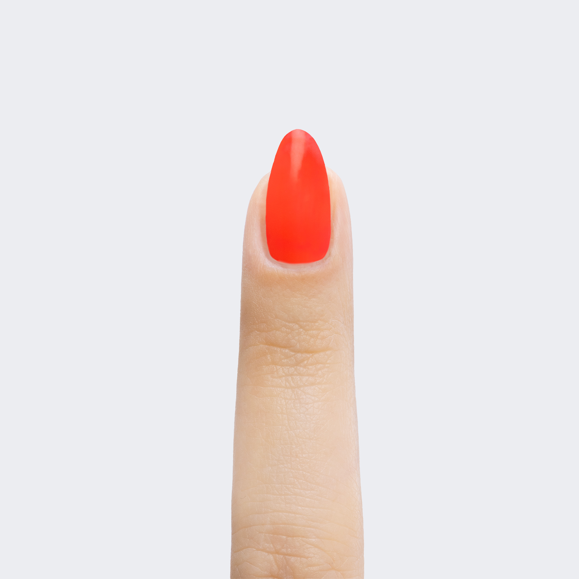 Neon coral. Medium-light. Opaque. Warm undertone.