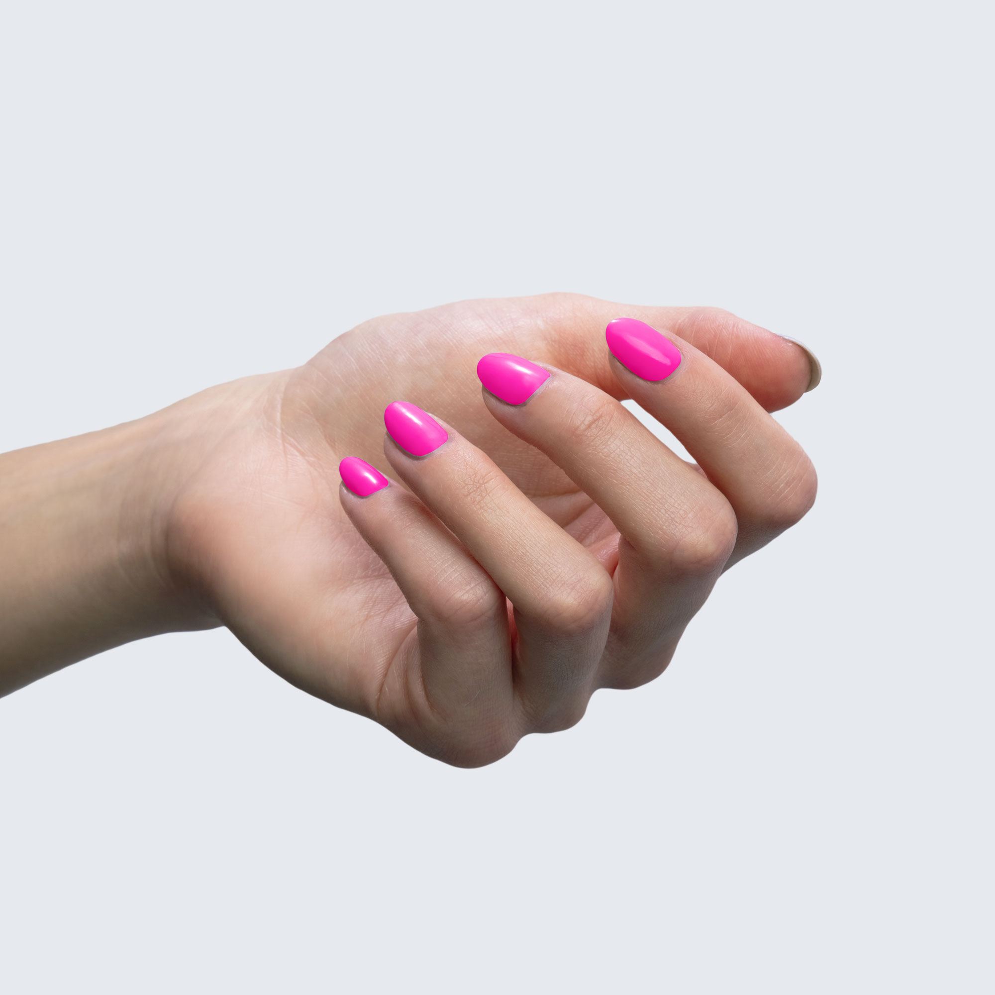 Neon fuchsia. Bright. Pearl finish. Warm undertone. Medium opacity.